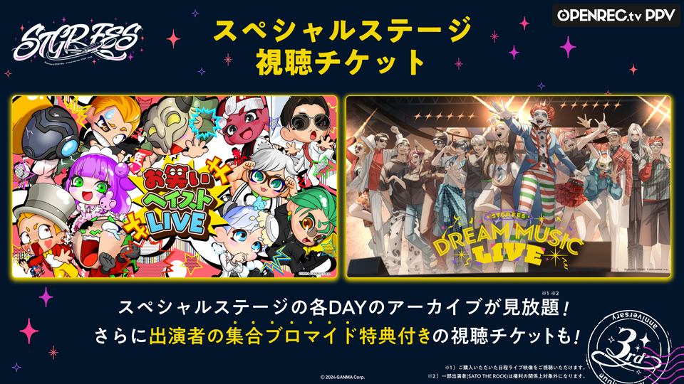 ストグラ3周年記念イベント「ストグラフェス」のステージエリアにて開催されたスペシャルLIVEをイベント後日にプレミア公開で配信!