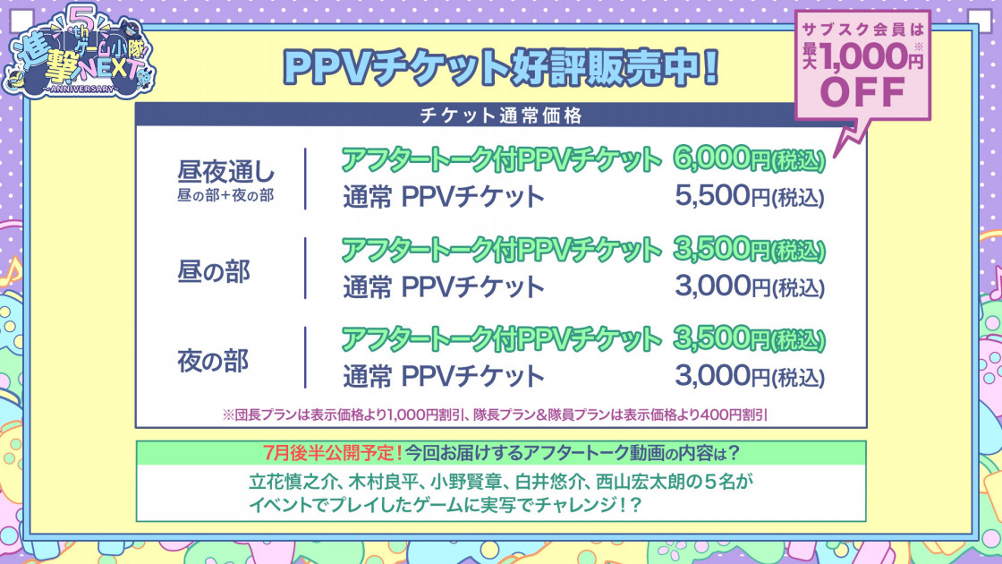 ※こちらのチケットはOPENREC.tv『進撃!声優ゲーム小隊!NEXT』のサブスクチャンネル「団長プラン」会員様限定のお申込みとなります。